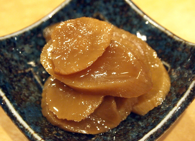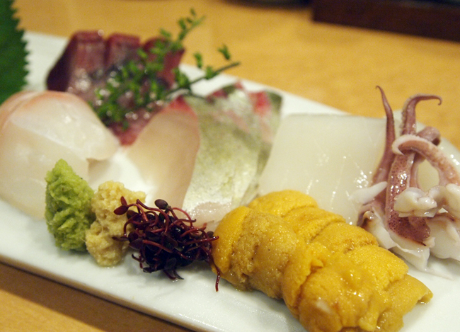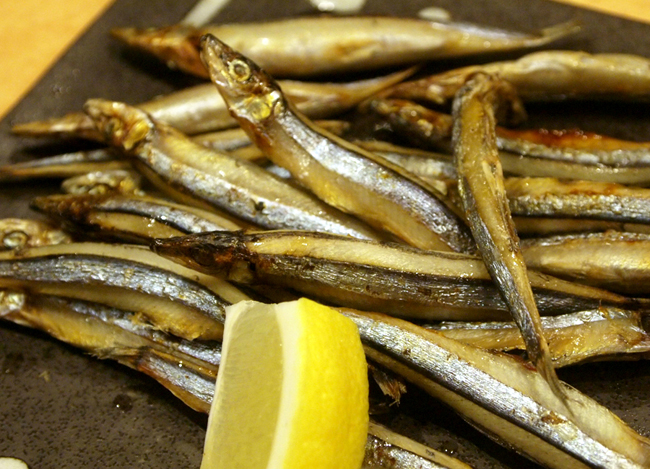 鹿児島新特産物、カンパチ薫製のお刺身。レモンをしぼって岩塩で食べていただきます。